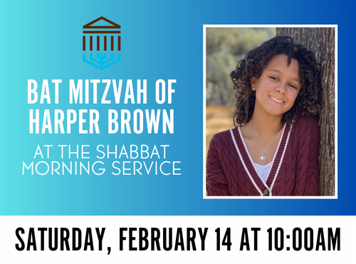 Please join us as Ella Boughan is called to the Torah as a Bat Mitzvah on Saturday, February 7 at 10:00AM.